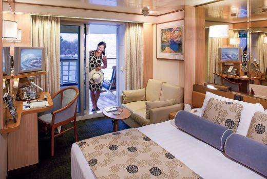 Vista Suites feature two lower beds convertible to a queen-size bed, whirlpool bath & shower with fragrant soaps, lotions, shampoo and other bath amenities from Elemis Aromapure, sitting area, private verandah, mini-bar, refrigerator, floor-to-ceiling windows. Stateroom amenities include luxurious beds featuring Sealy Premium Euro-Top mattresses and finely woven cotton linens, deluxe waffle weave and terry cloth bathrobes for use during your voyage, 100% Egyptian cotton towels, premium massage showerheads, and 5X magnifying make-up mirrors and salon-quality hair dryers. Suites also benefit from complimentary fresh fruit on request, elegant ice bucket and serving tray for in-stateroom beverages, Flat-panel TV and DVD player, as well as ice, shoeshine and nightly turndown service.In addition to the stateroom amenities, guests cruising in Vista Suites also benefit from a variety of firm, medium and soft pillows, no-host mini-bar for easy entertaining, personalised cruise stationery, oversized bath towels, one-touch telephone concierge service, fresh flowers, and complimentary DVD library.